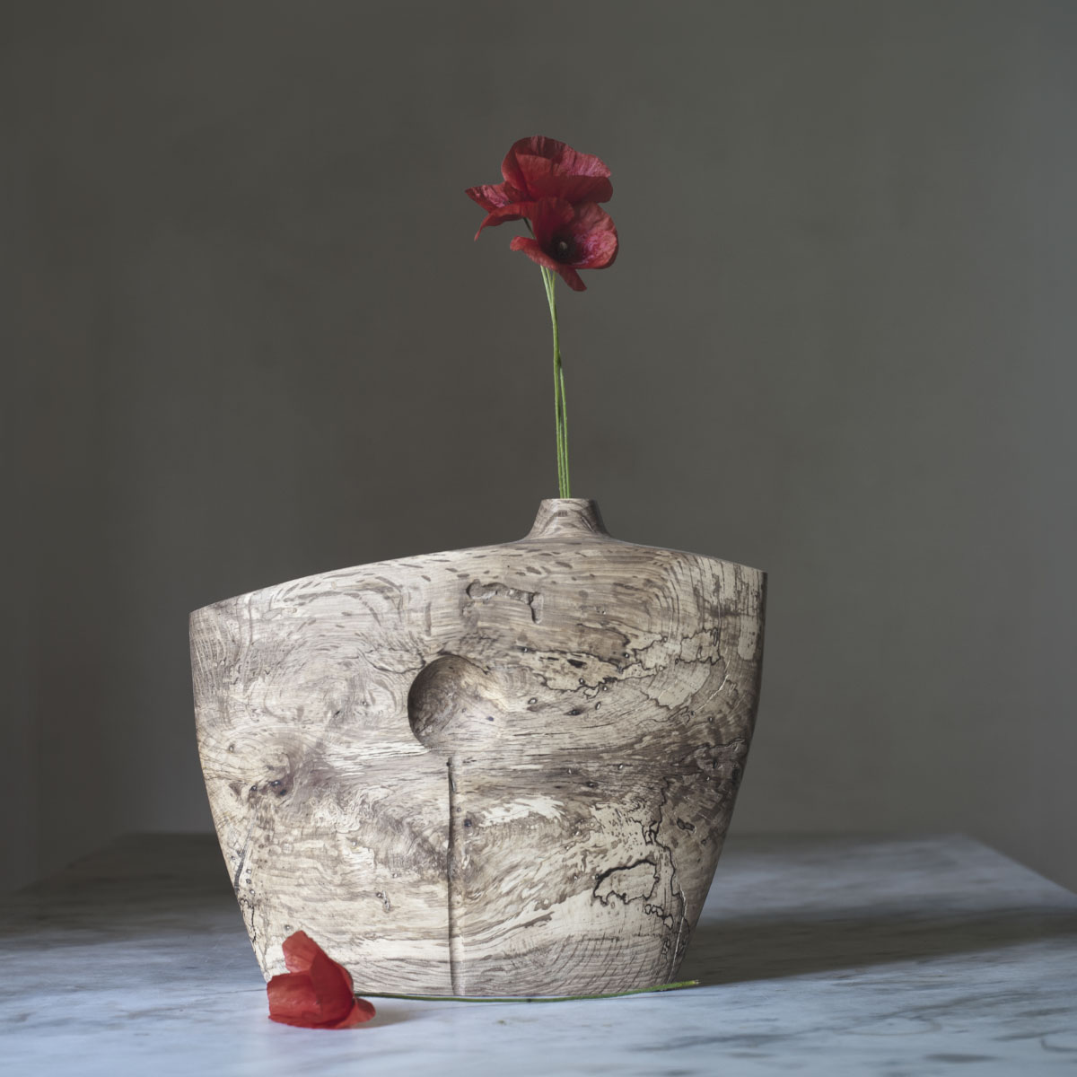 In this way the vases become an archive of travels, memories, crossings of different ecosystems, becoming an encyclopaedia of precious essences: oak, olive tree, maple, cherry, strawberry tree, plum.